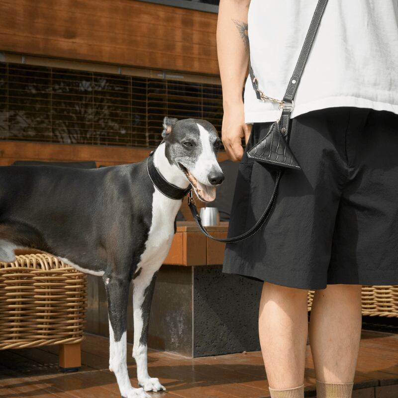 OBSIDIAN ハンズフリードッグリードは、ペットオーナーにとってエレガンスと実用性を兼ね備えたアイテムです。片面には黒のクロコ型押しレザー、もう片面には高品質のグレインレザーが使われており、時代を超えた洗練された雰囲気を醸し出しています。ゴールドのハードウェアがクラシックな魅力を加え、このリードはあなたの愛犬にとってスタイリッシュで実用的なアクセサリーです。お散歩やジョギングの際、ハンズフリーリードは快適さ、耐久性、視覚的魅力を完璧に兼ね備えた選択肢で、スタイルと機能性を重視するペットオーナーに最適です。