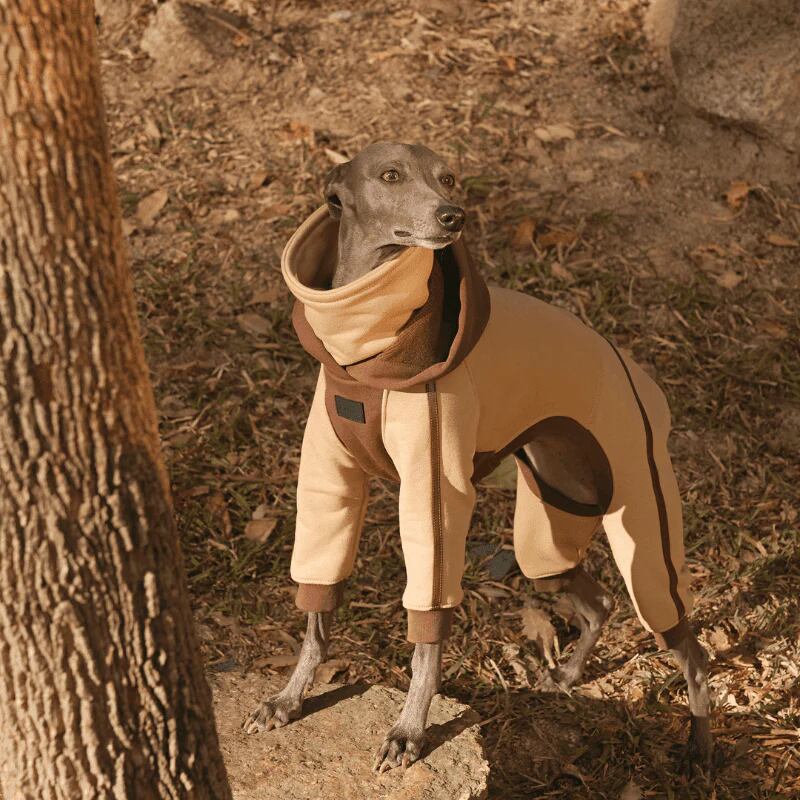 愛犬のスタイルを格上げする「HAZELNUT フード付きワンジー」は、シックなドッグクチュールの究極形です。クリームベージュのフリースコットンをベースに、ダークチョコレートブラウンのアクセントと上品なダークブラウンのレザーストリップディテールを施し、比類なきエレガンスと暖かさを提供します。EMBUR フード付きワンジーと完璧にコーディネートできるHAZELNUTは、ドッグファッションに新風を吹き込み、愛犬を最高に引き立てます。ニュートラルトーンの絶妙な組み合わせで、どんなファッショナブルな犬のワードローブにもマッチする万能アイテムです。今日からHAZELNUT ワンジーで、愛犬をペットハイストリートファッションのアイコンにしましょう。