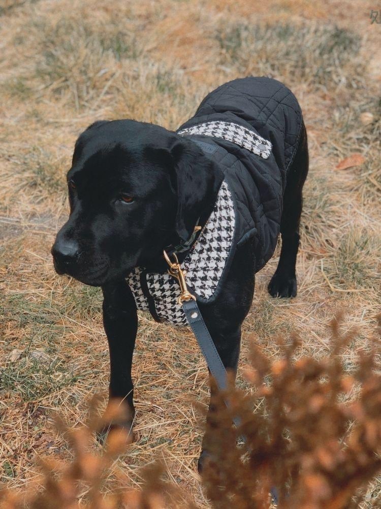 クラシカルなブラック&ホワイトの千鳥格子柄ツイードと、レザートリムが高級感を演出。
