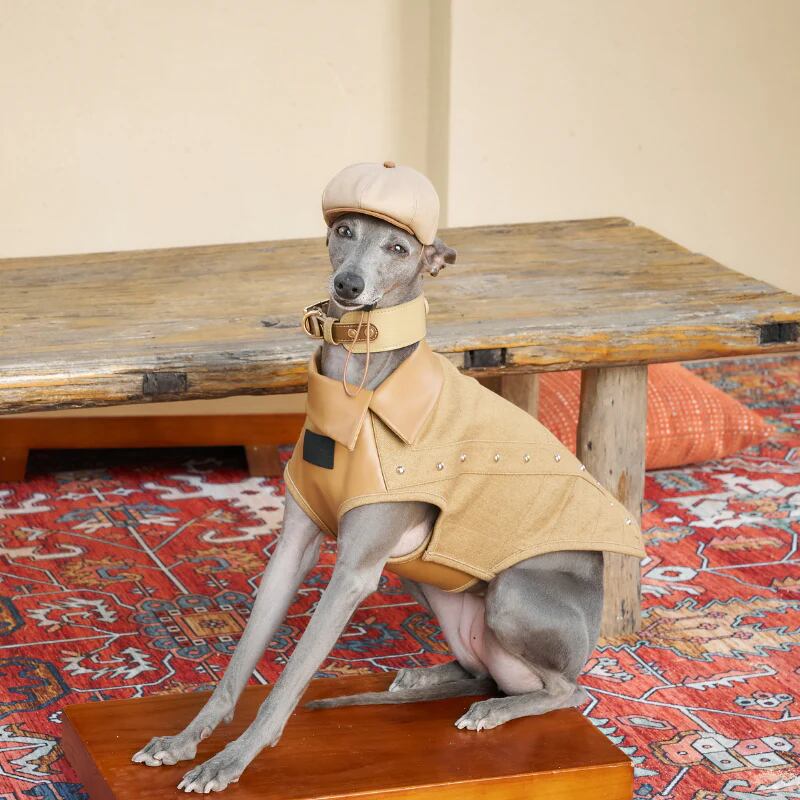 ・ 首元には質感の異なるフェイクレザーを使用し、ハイセンスなアクセントに。