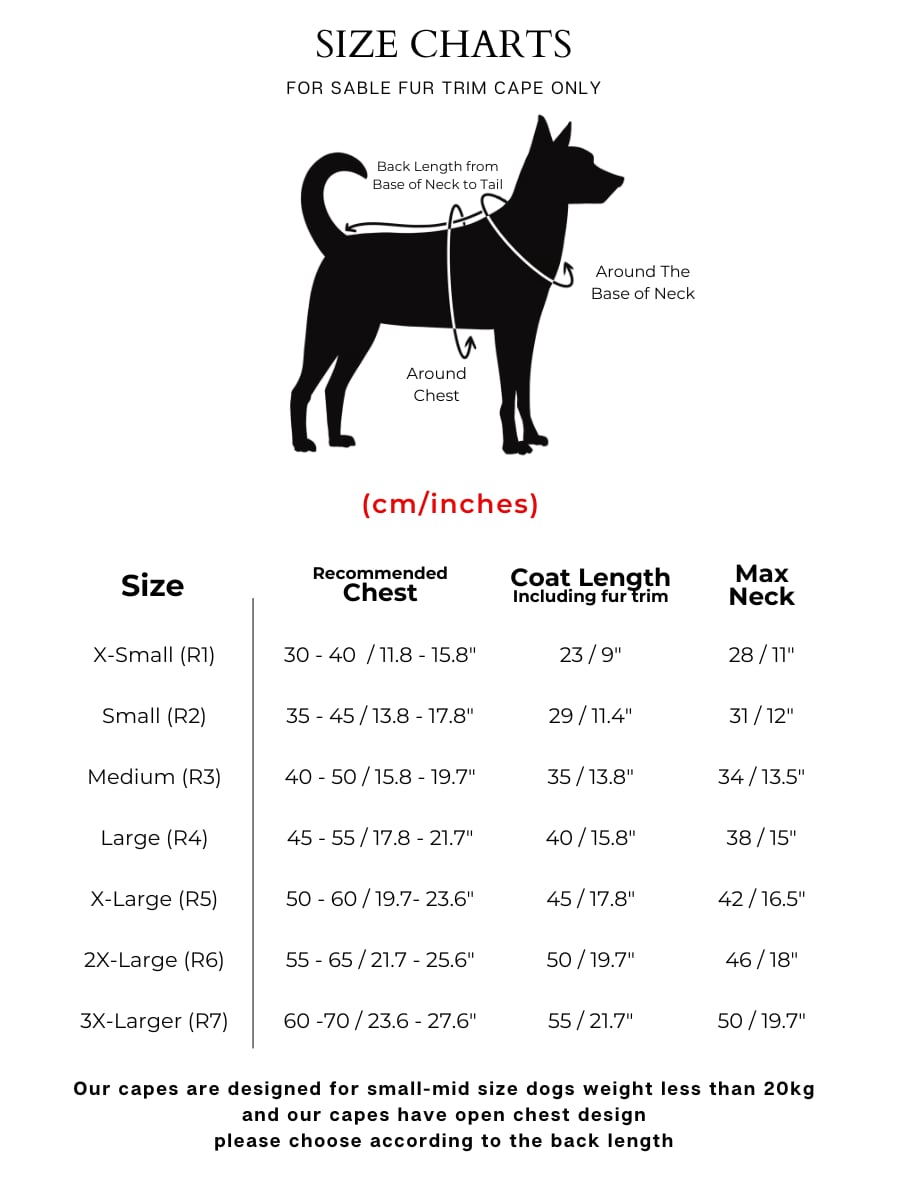 SABLE ケープは、ラグジュアリーペットウェアの中でも際立つ存在感を放つ一着。