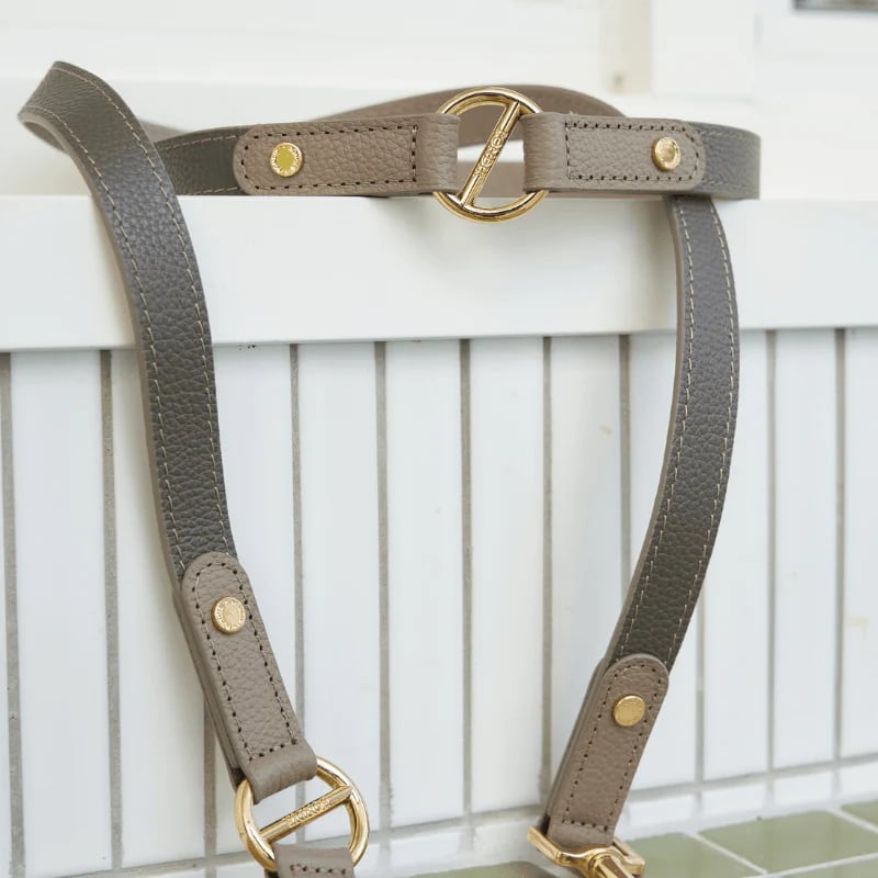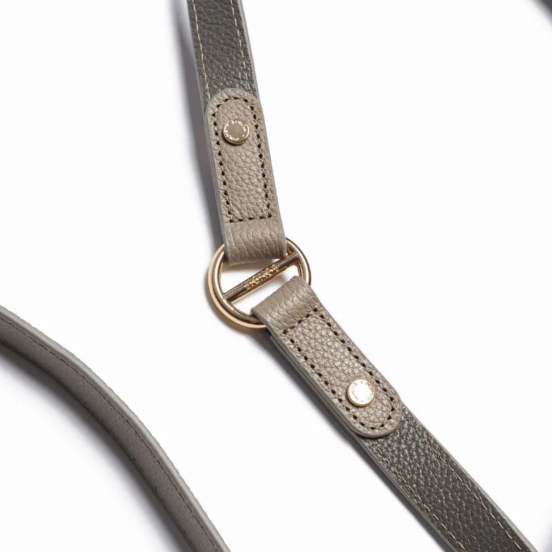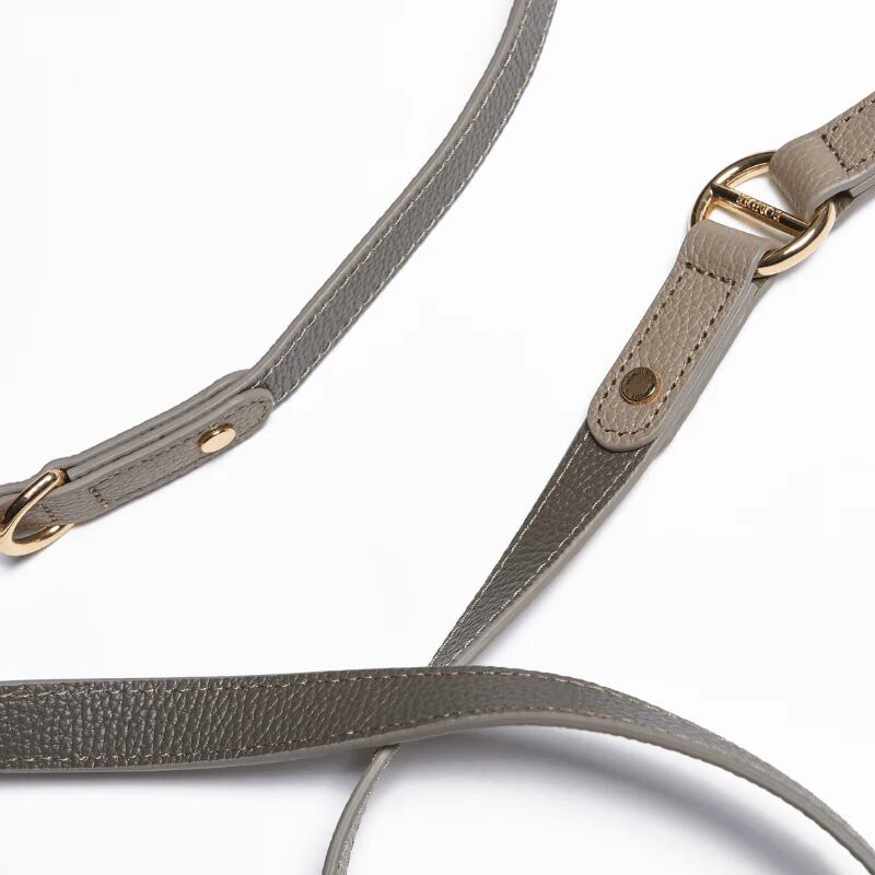 プレミアムなトープとダークトープのグレインレザーを使用し、エレガントなゴールドハードウェアがラグジュアリーな雰囲気を演出します。