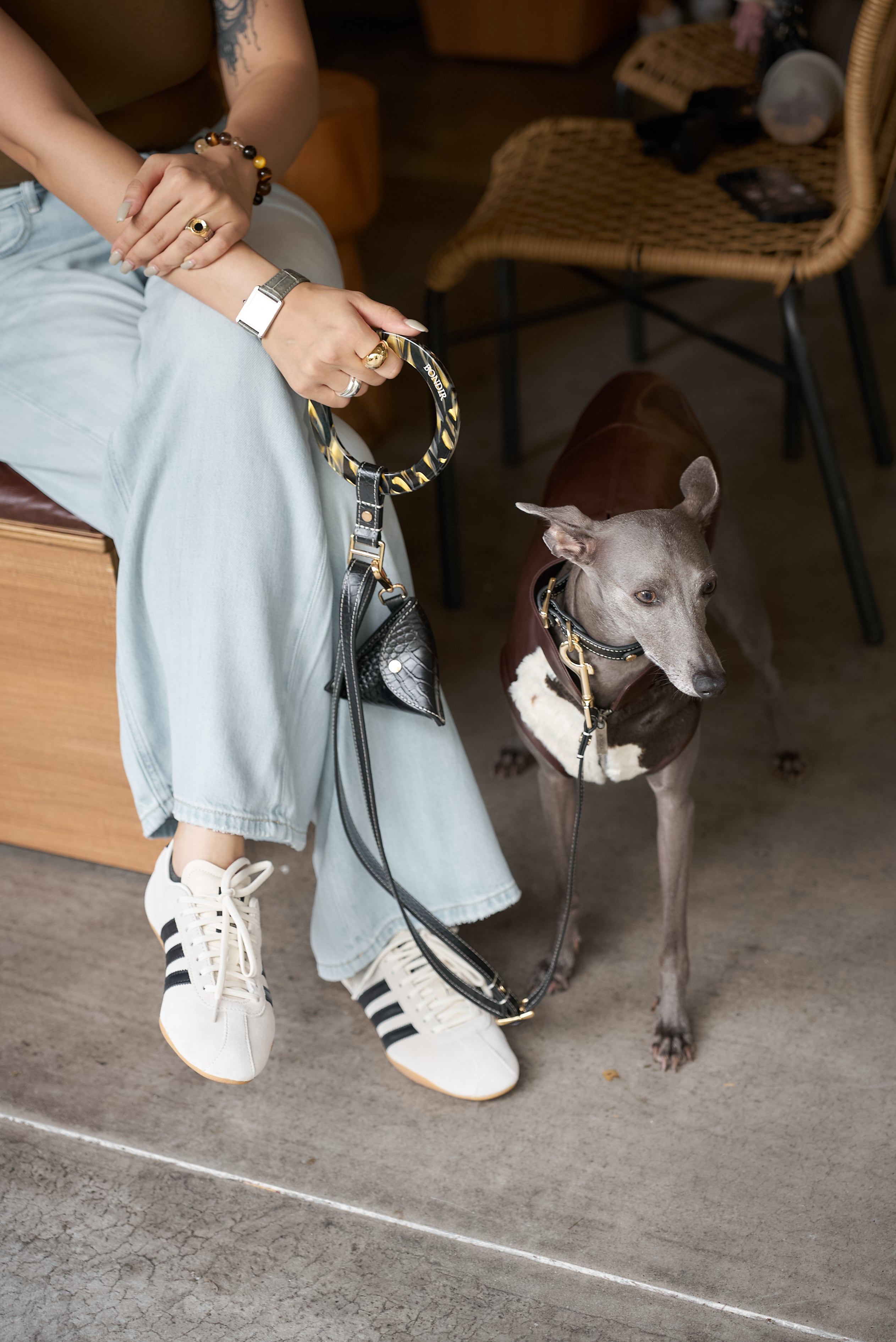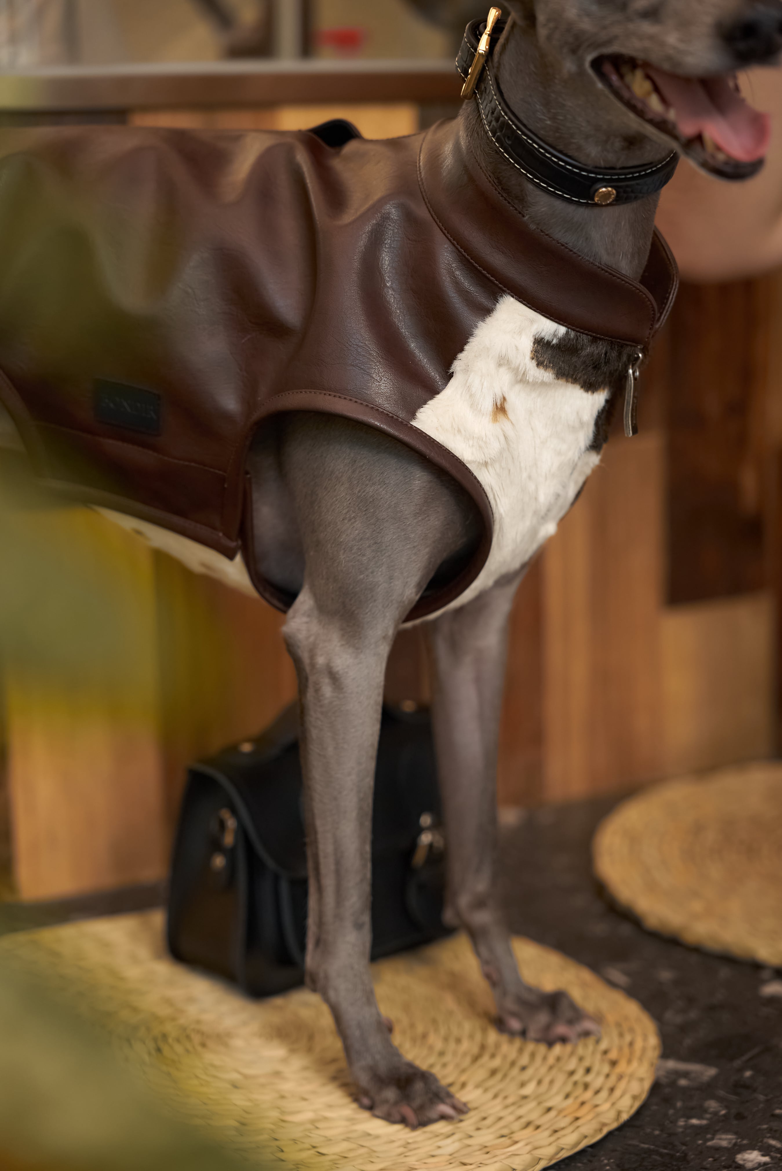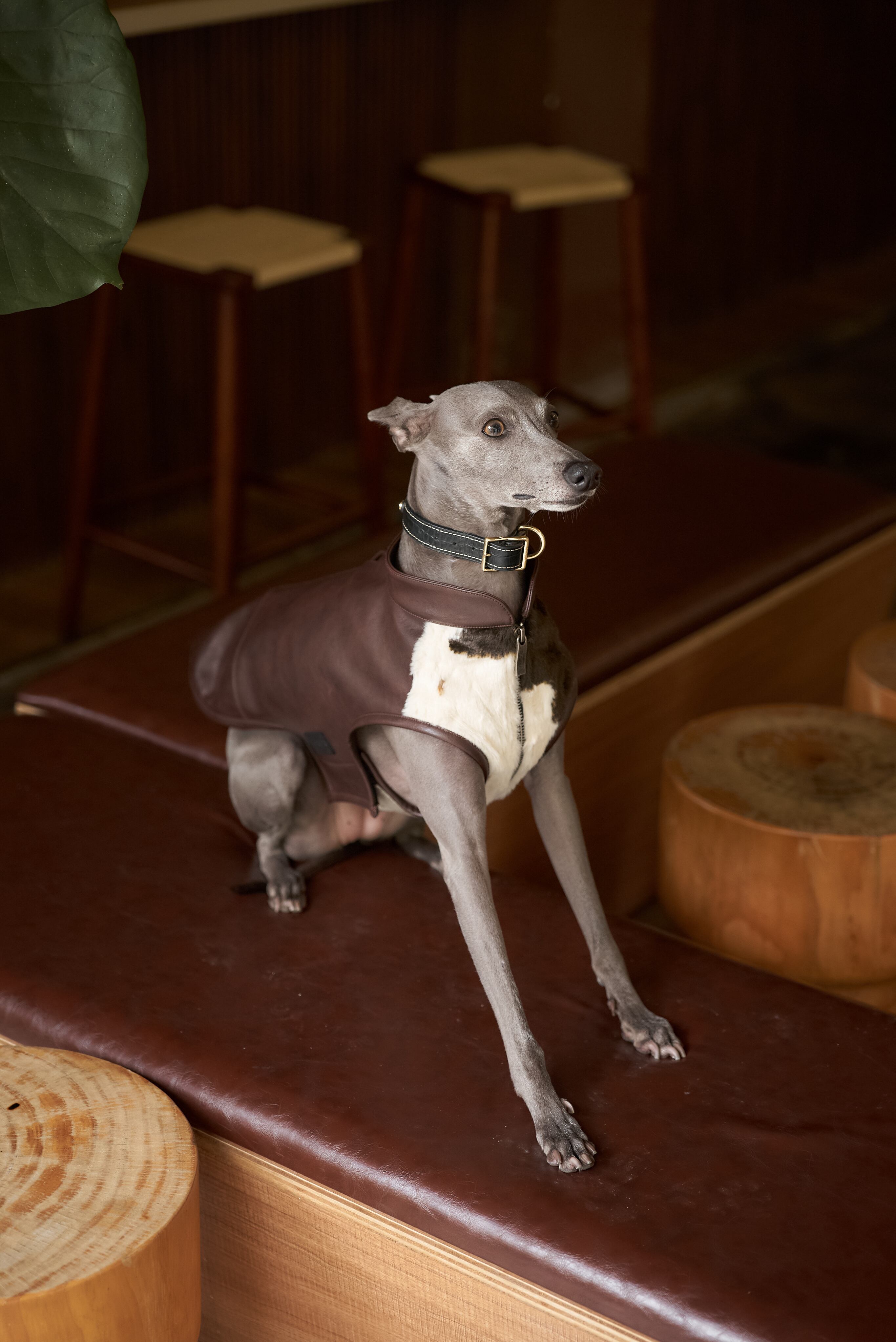 遊び心あふれる「BAXLEY カウハイドレザーベスト」は、フロントのヴィーガンファーで公園でも注目を集め、背面には深みのあるバーガンディのヴィーガンレザーをあしらった上品なデザイン。