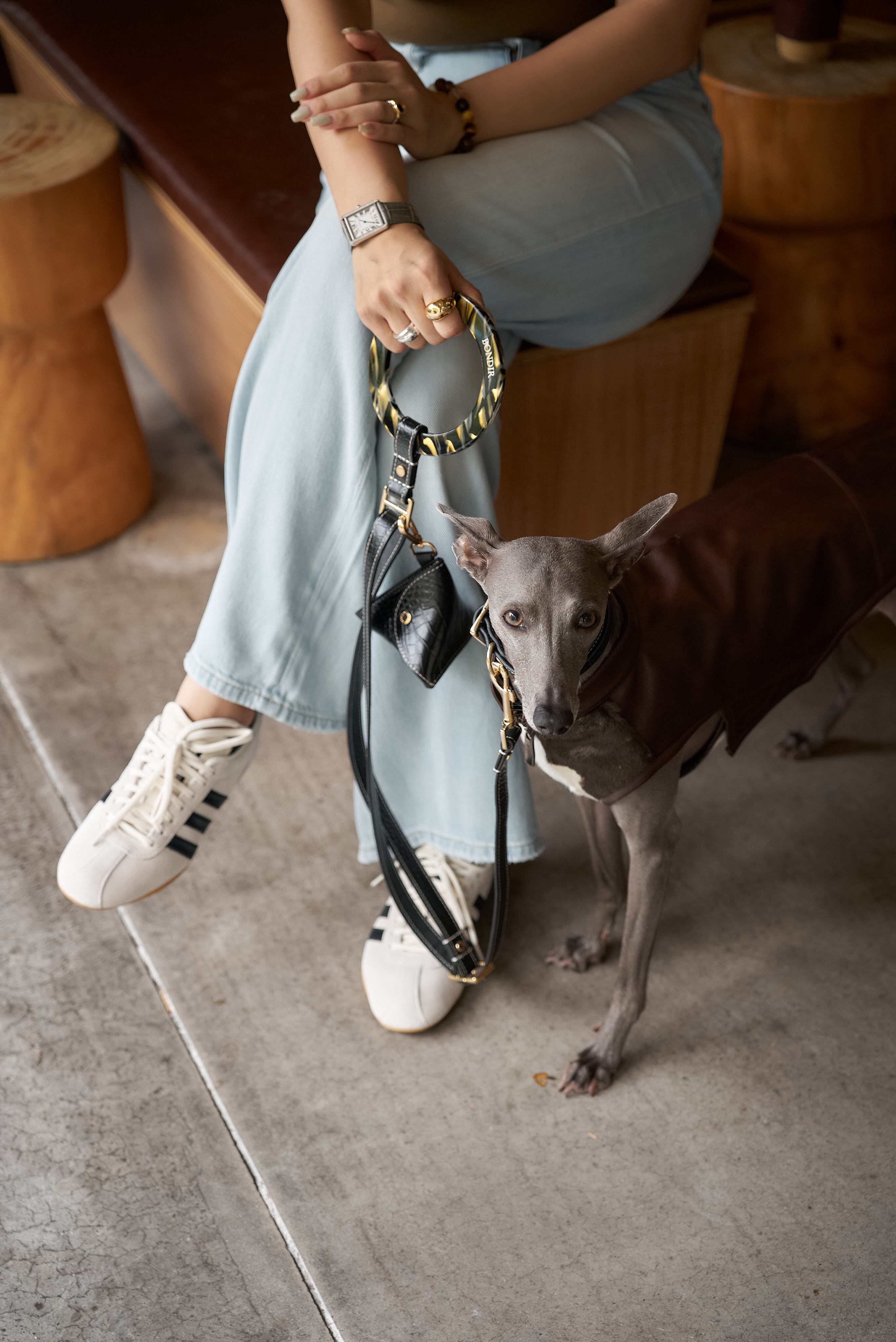 遊び心あふれる「BAXLEY カウハイドレザーベスト」は、フロントのヴィーガンファーで公園でも注目を集め、背面には深みのあるバーガンディのヴィーガンレザーをあしらった上品なデザイン。