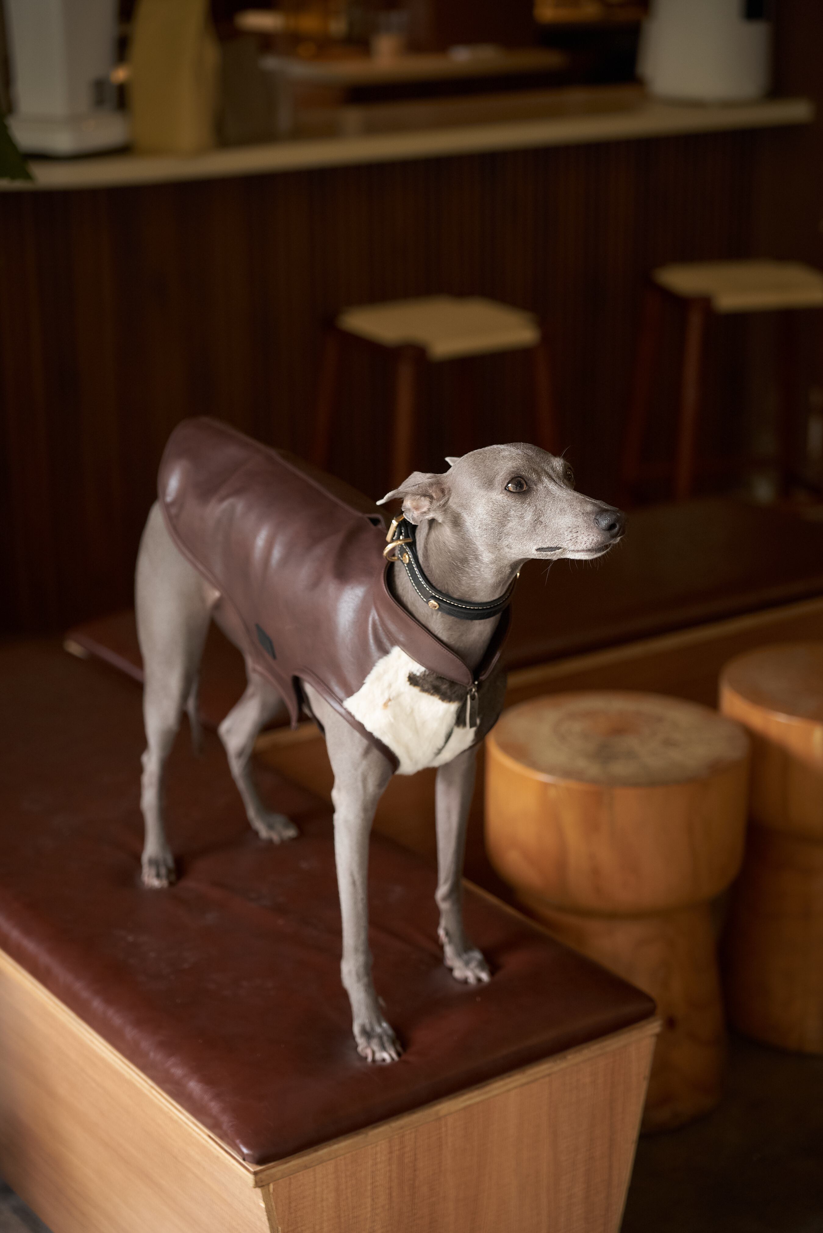 遊び心あふれる「BAXLEY カウハイドレザーベスト」は、フロントのヴィーガンファーで公園でも注目を集め、背面には深みのあるバーガンディのヴィーガンレザーをあしらった上品なデザイン。