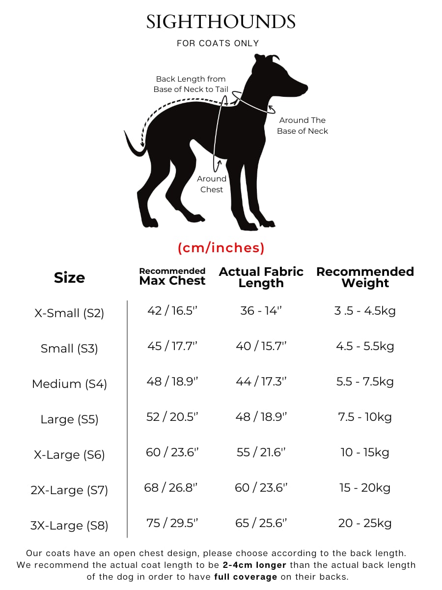 当コートはスリム体型の犬種(サイトハウンド)向けです。