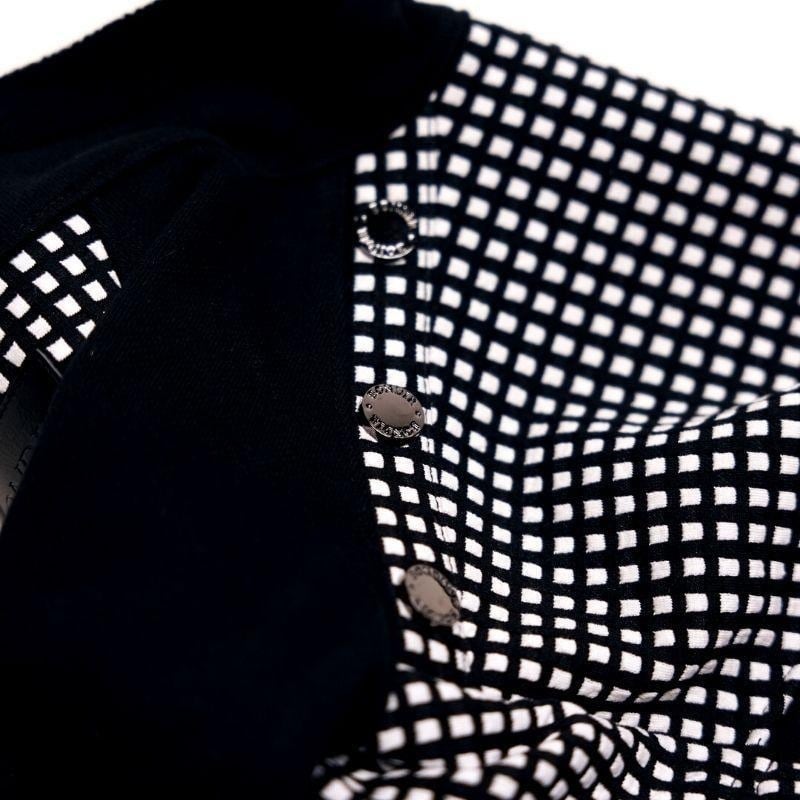 クラシックなブラックと前衛的なブラック&ホワイトのミニスクエアパターンを洗練的に組み合わせたデザインで、シックかつアーバンな美学を演出します。