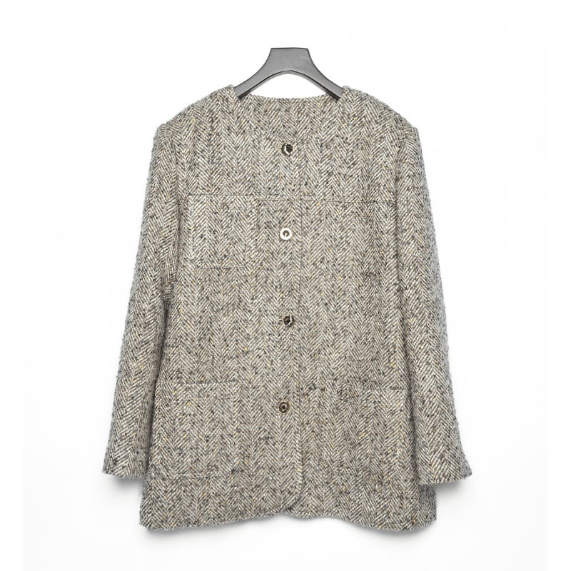 タイムレスなヘリンボーンツイードパターンが控えめなエレガンスを演出し、考え抜かれたテーラリングがどんなコーディネートにもフィットする美しいシルエットを提供します。