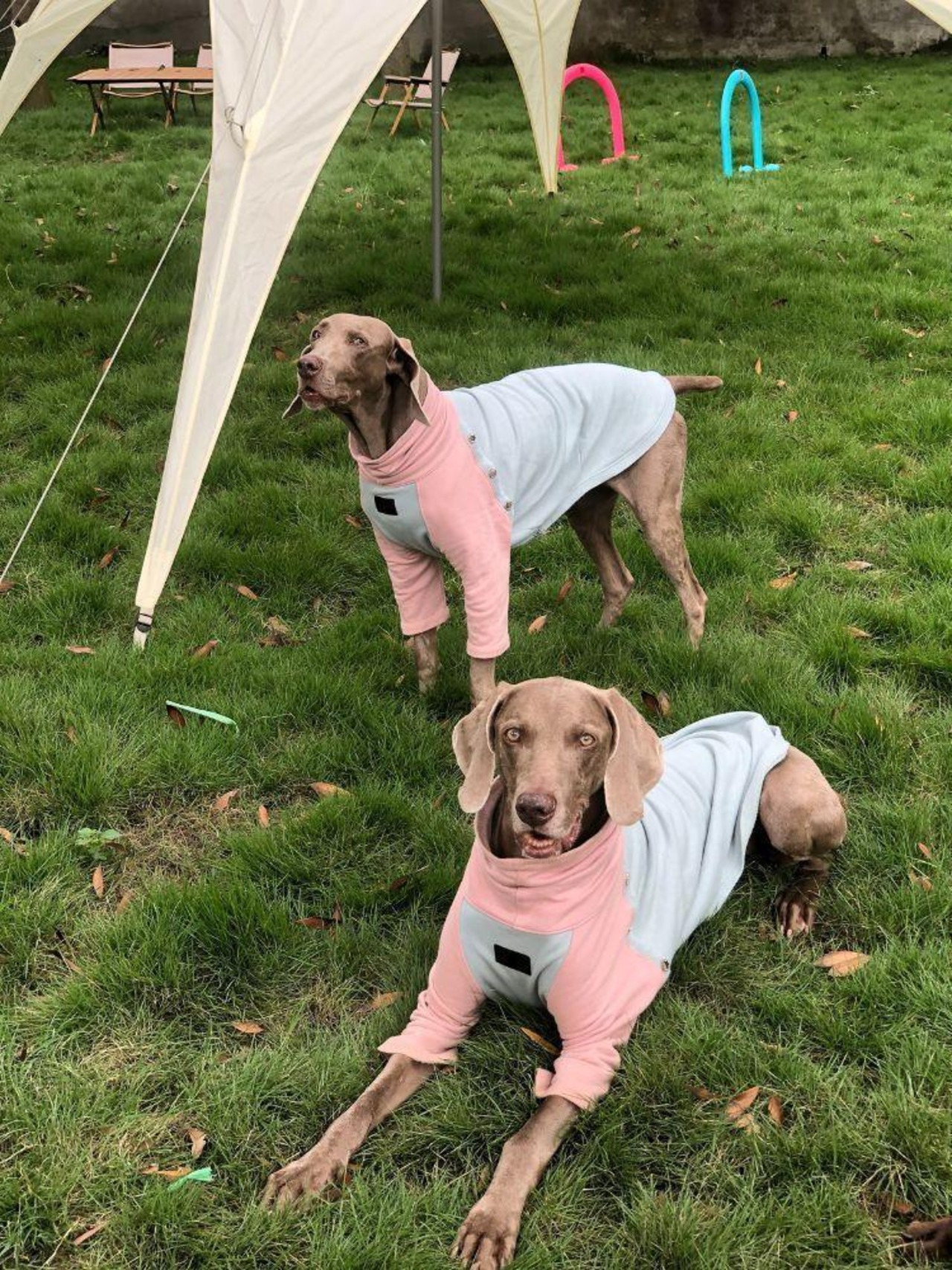 カラーアクセントの「Gossamer Pink」は襟元と袖にあしらわれ、どんよりした日でも明るい印象に。ボディには「Spun Sugar」のキュートなブルーが広がり、マルチカラーの装飾が施されています。柔らかくて可愛らしい見た目は、あなたもワンちゃんも気分を上げてくれます。