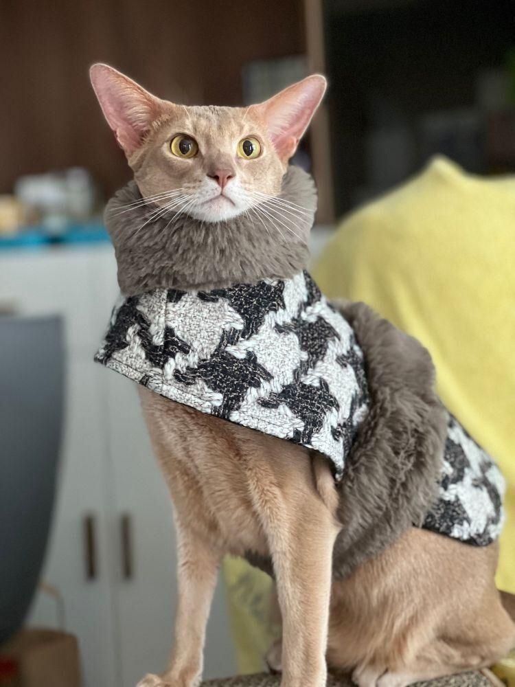 丈夫なウールツイードの大胆な千鳥格子柄で作られたコート「CASA BLANCA COAT」