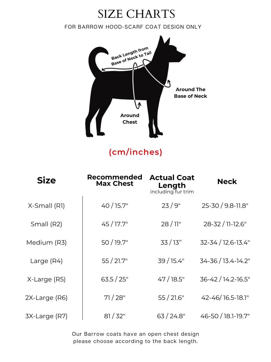 ダブルブレストのデザインとファートリムが品格を演出し、取り外し可能なフードとスカーフが実用性とスタイルを両立します。
