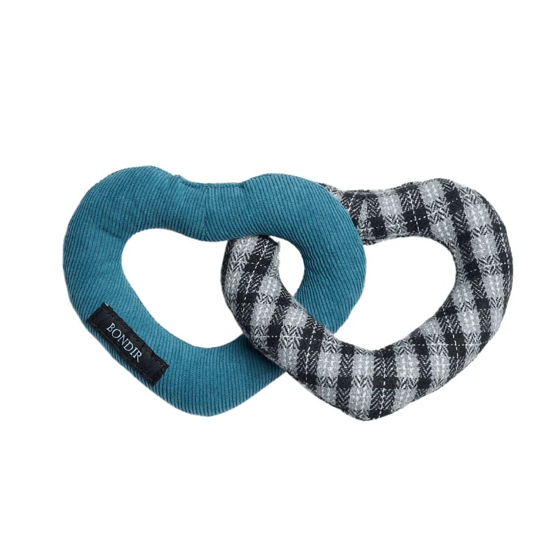 Marine Tweed Squeaky Interlocking Heart Dog Toy