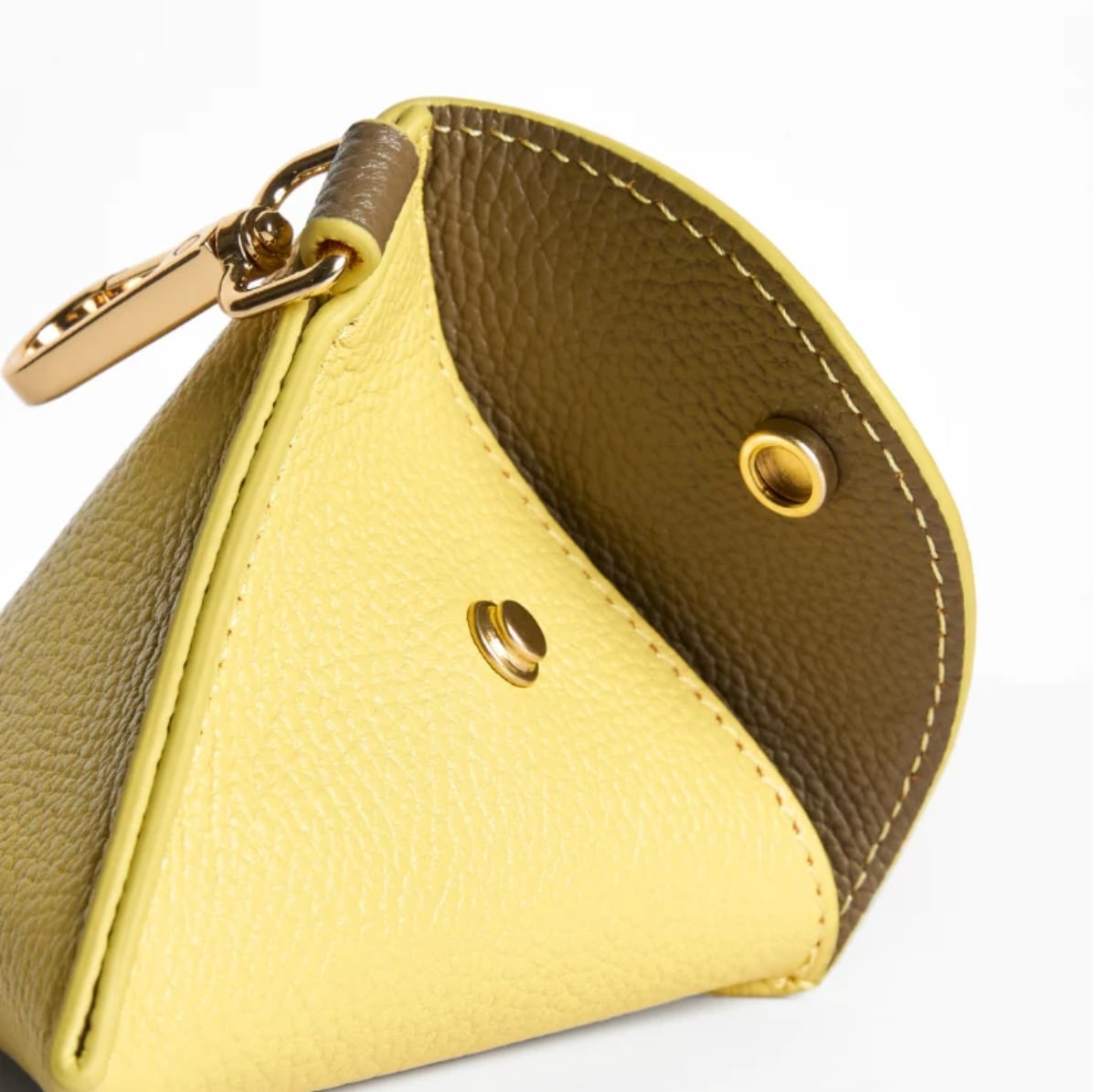 このユニークな三角形のバッグは、トリーツバッグとウンチ袋ケースの2WAY仕様。ひとつで両方の役割を果たすので、別々に持ち歩く手間が省けます。便利なボタン式開閉で、おやつをしっかりと保管可能。