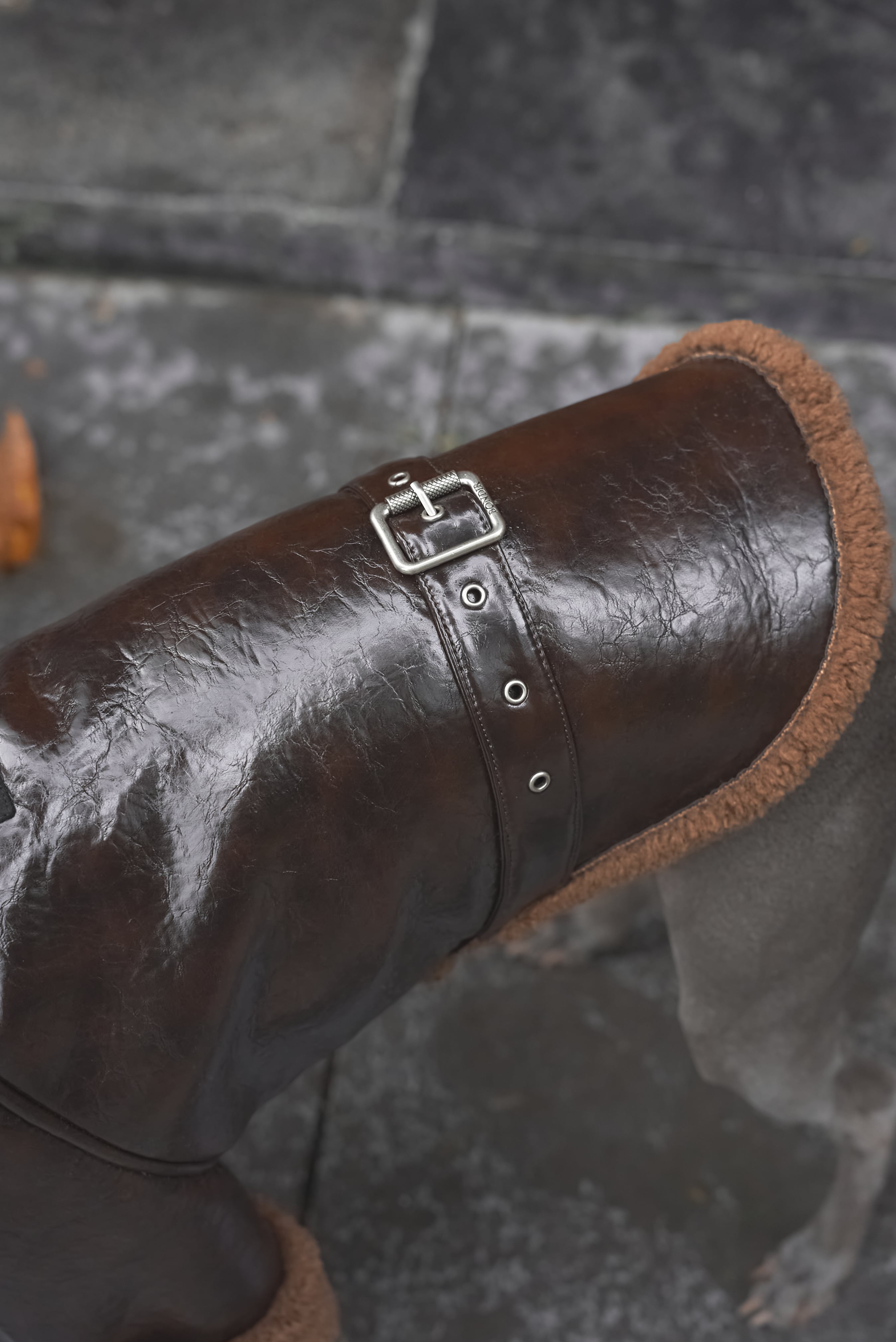 「WOODLAND ヴィーガンシアリングジャケット」は、ファッショナブルで大切にされている愛犬にぴったりの究極のアイテムです。贅沢なブラウンのヴィーガンテディファーで作られ、シックなベルトディテールがアクセントとなり、素晴らしい温かさとエッジの効いたスタイルを提供します。
