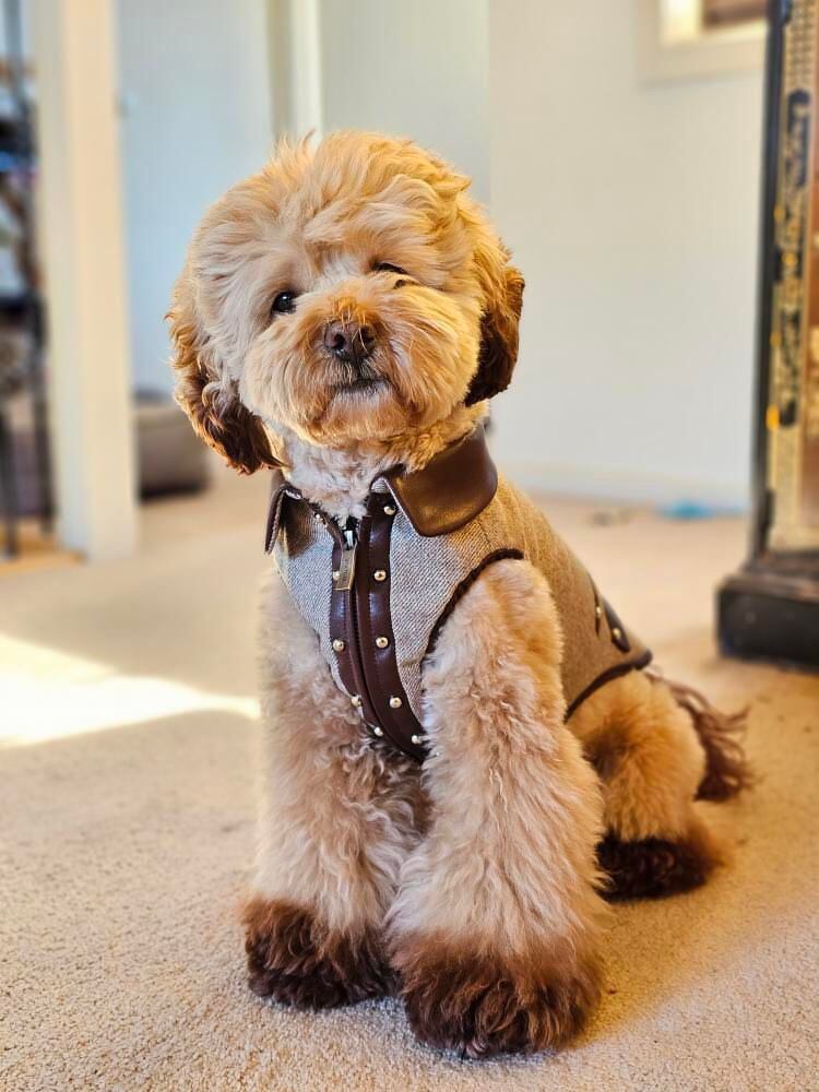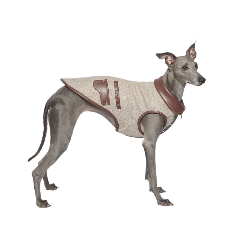 「BORDEAUX ウールツイードベスト」で愛犬を贅沢におもてなし。高級なレザーと印象的なスタッズがクラシックなツイードを引き立て、特別な日にもぴったりなアイテムです。細部にまでこだわって作られたこのベストは、秋冬のお出かけにも最適で、愛犬に快適さとタイムレスなエレガンスを提供します。
